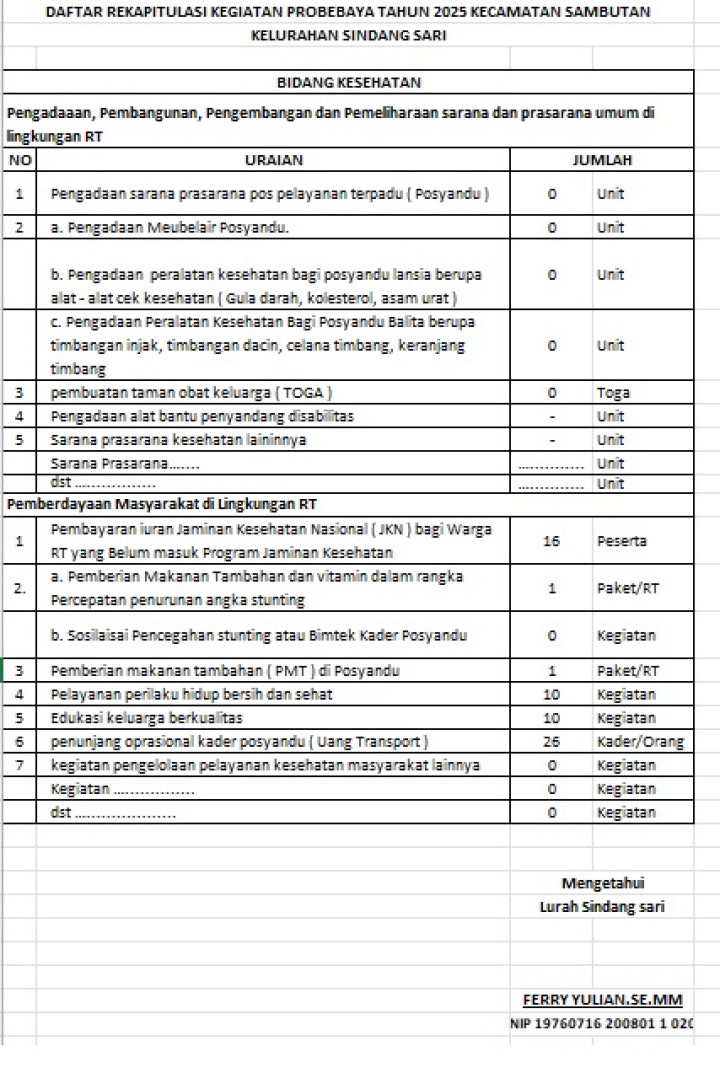 DAFTAR REKAPITULASI KEGIATAN PROBEBAYA TAHUN 2025 BIDANG KESEHATAN