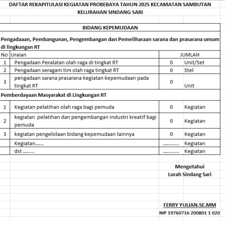 DAFTAR REKAPITULASI PROBEBAYA TAHUN 2025 BIDANG KEPEMUDAAN