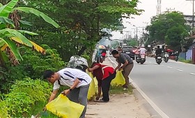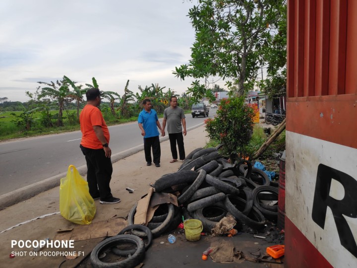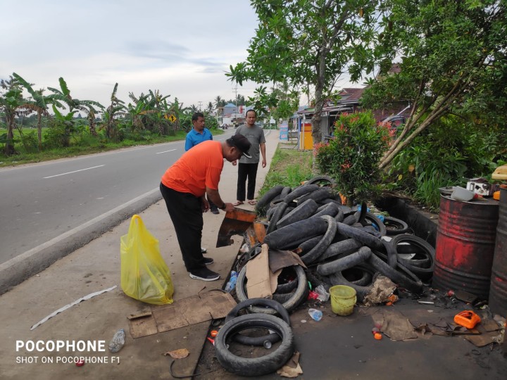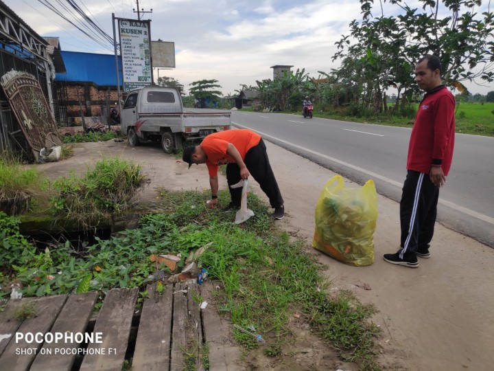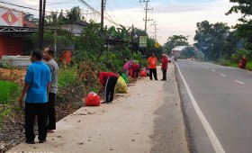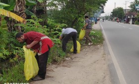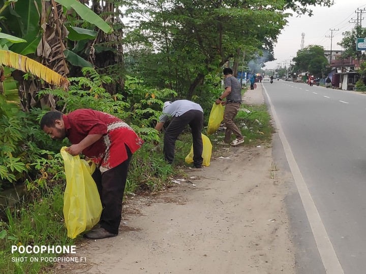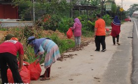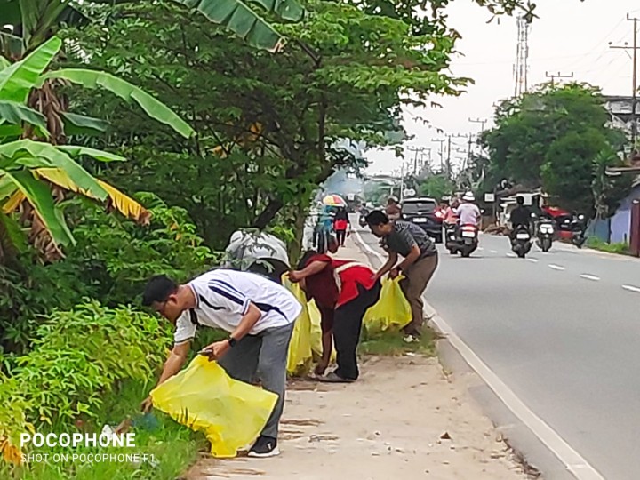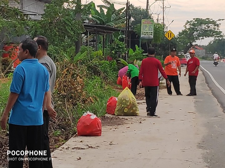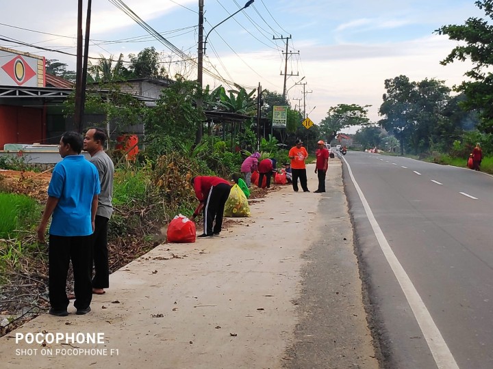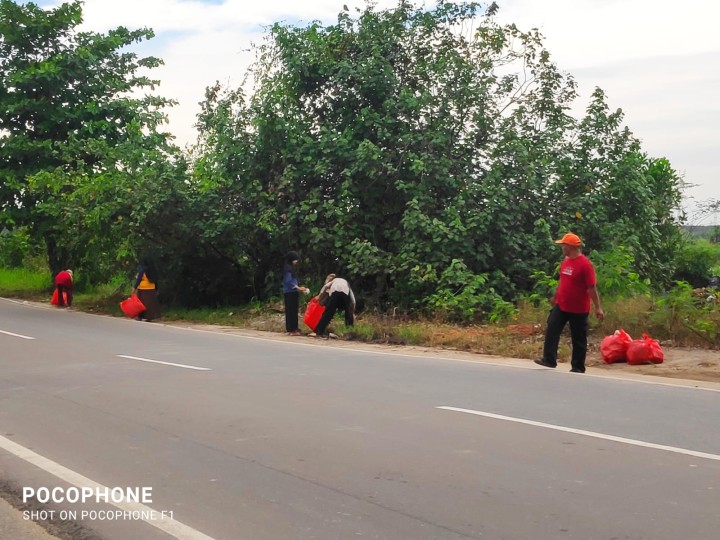 Gotong Royong jum'at bersih di membersihkan sampah dan Gulma sekitaran pinggir jalan poros
