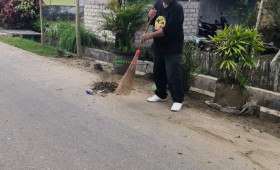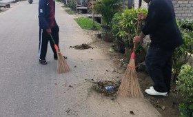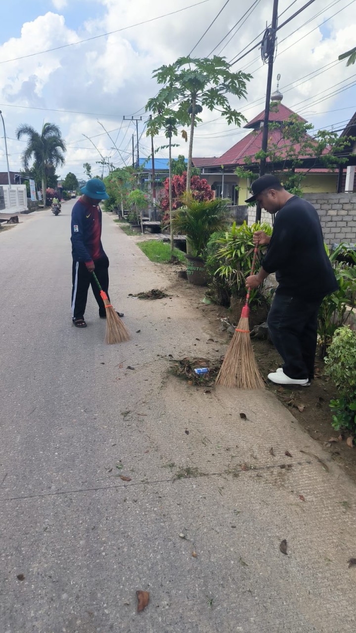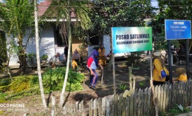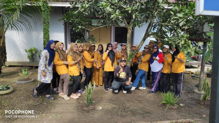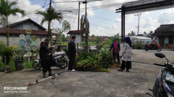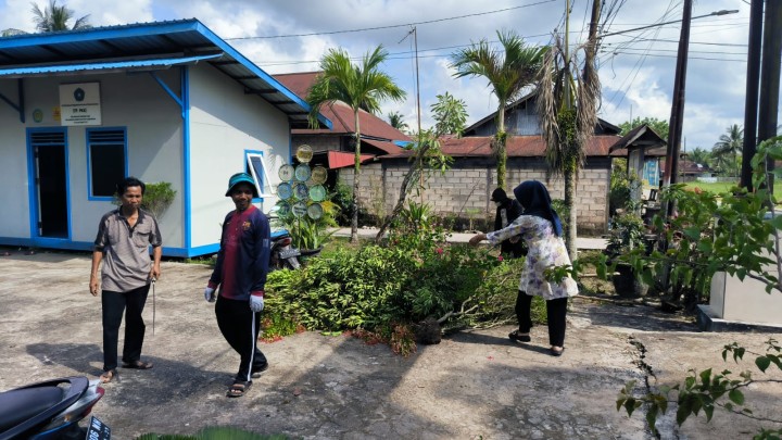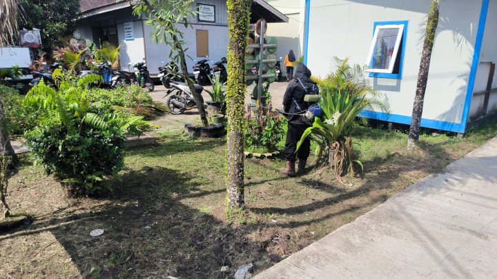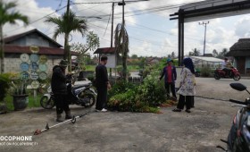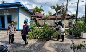 Kegiatan Kerja Bakti oleh Kader PKK Kelurahan Membersihkan Rumput/gulma dan Tanaman pohon ranting kering di lingkungan sekitar sekretariat Kampung KB