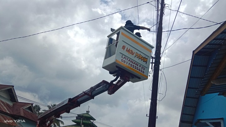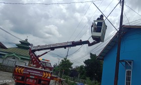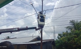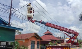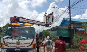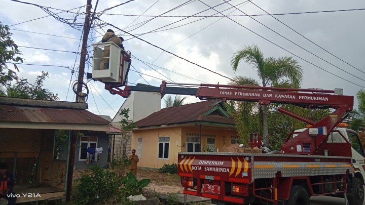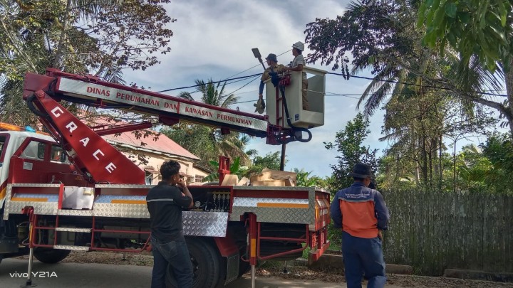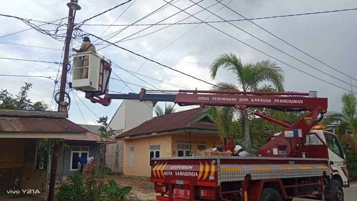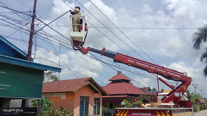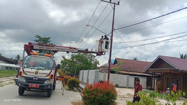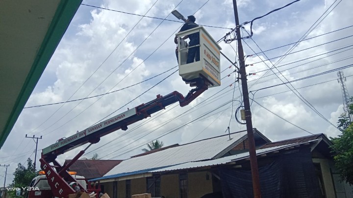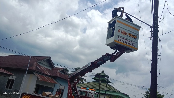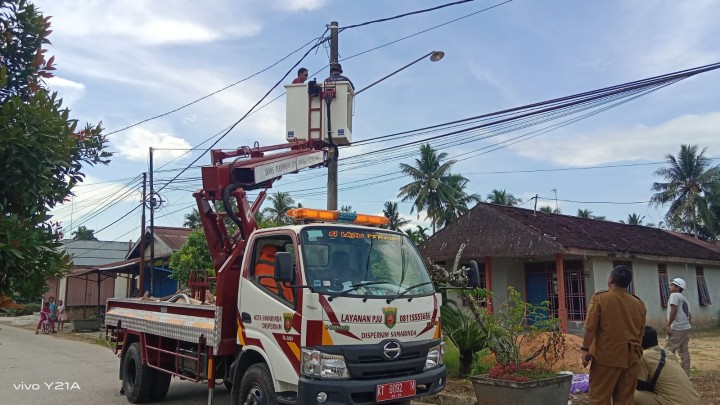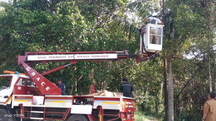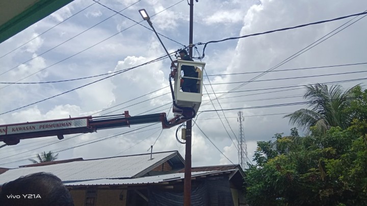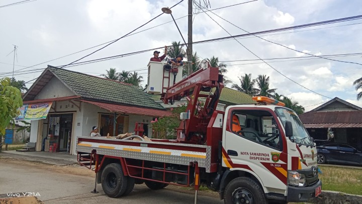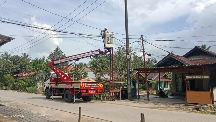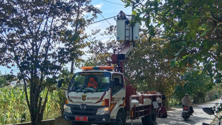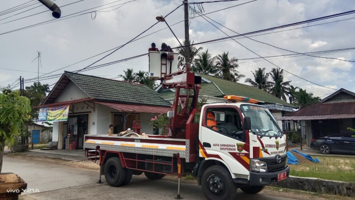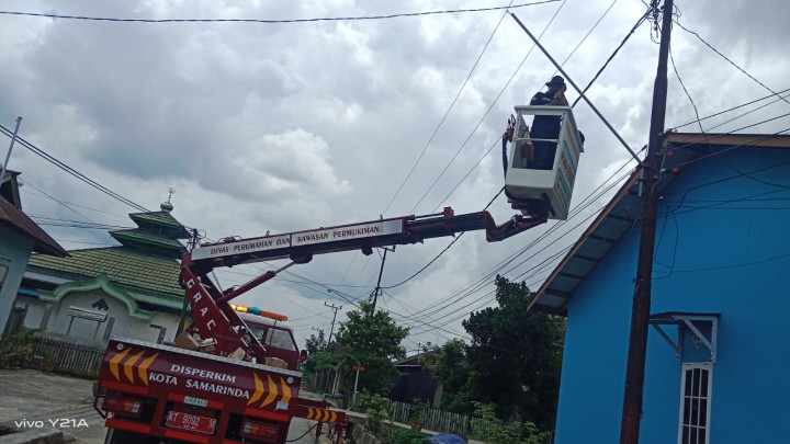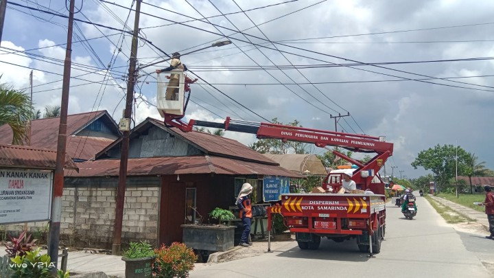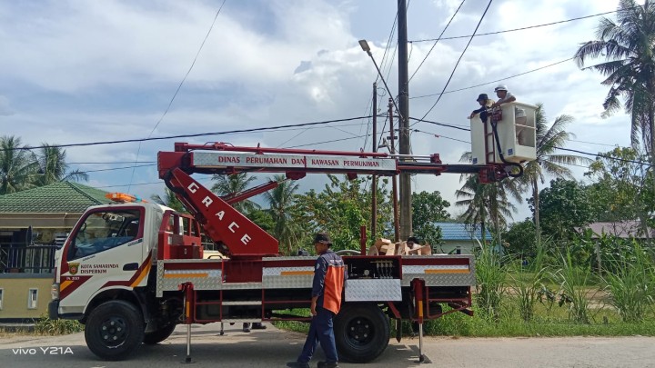 Perbaikan/Pemasangan lampu Jalan oleh PJU Disperkim Kota Samarinda.