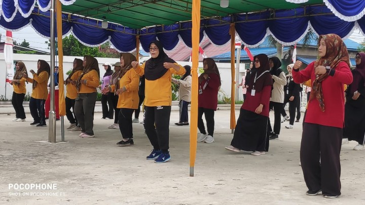 Senam Sehat oleh Pegawai Kelurahan,Kader PKK,Mahasiswa KKN.
