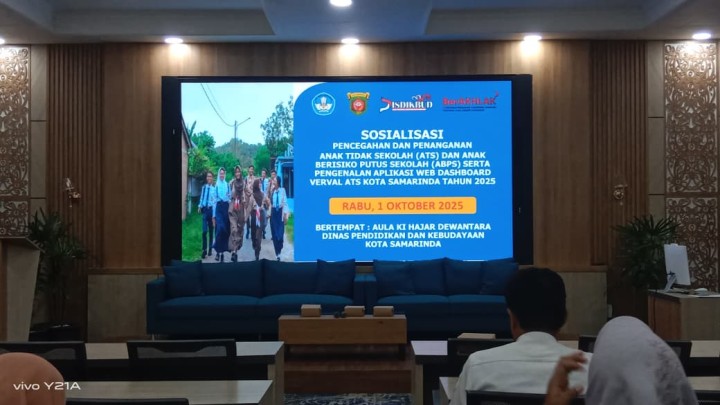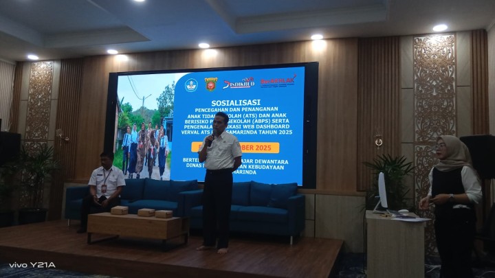 Sosialisasi Program Pencegahan dan Penanganan Anak Tidak Sekolah (ATS) dan Anak Beresiko Putus Sekolah (ABPS) serta Pengenalan Aplikasi Web Dashboard Verval ATS Kota Samarinda Tahun 2025.