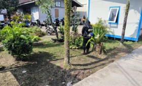 Kegiatan Kerja Bakti oleh Kader PKK Kelurahan Membersihkan Rumput/gulma dan Tanaman pohon ranting kering di lingkungan sekitar sekretariat Kampung KB